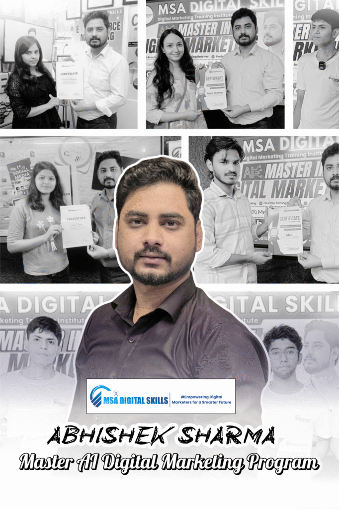 MSA Digital Skills is the best institute for mastering digital marketing in Delhi. Known for its practical approach and industry-focused training, MSA Digital Skills offers comprehensive modules covering SEO, Social Media, Google Ads, Email Marketing, WordPress, and AI Tools. Our expert trainers provide hands-on experience with live projects to ensure real-world learning. Whether you’re a student, entrepreneur, or job seeker, we equip you with the skills needed to thrive in the digital world. With 100% placement support and updated curriculum, MSA Digital Skills stands out as the top choice for digital marketing Institute in Delhi.